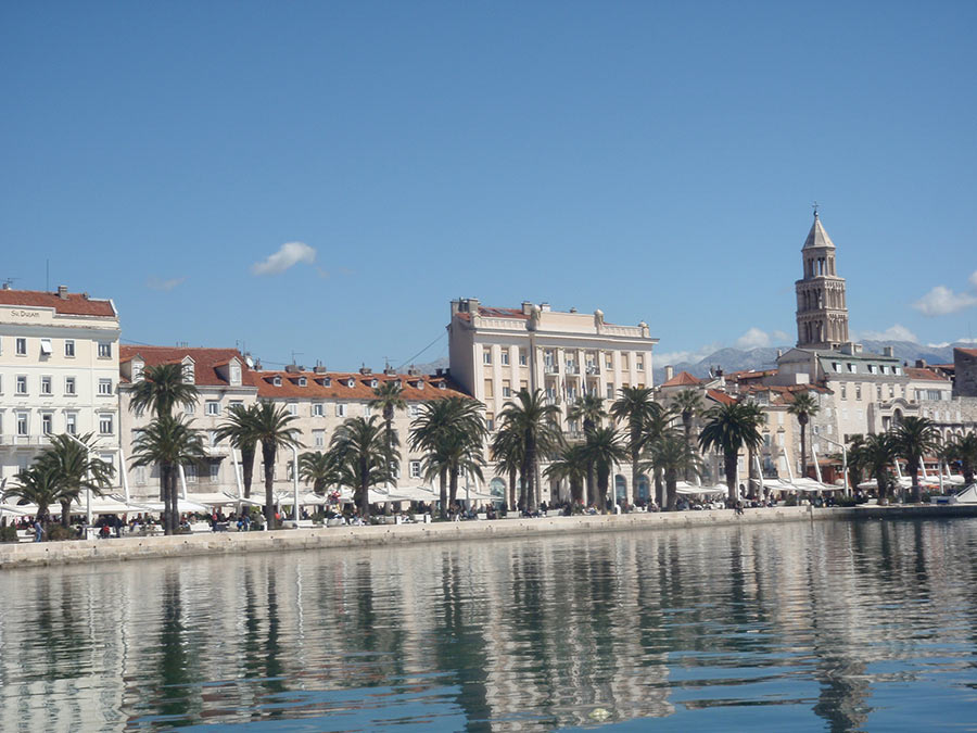 Split (pronounced [splît]) is the largest Dalmatian city, the second-largest urban centre in Croatia. The city is located on the shores of the Mediterranean, more specifically on the eastern shore of the Adriatic Sea, spreading over a central peninsula and its surroundings, with its metropolitan area including the many surrounding seaside towns as well. An intraregional transport hub, the city is a link to the numerous surrounding Adriatic islands and the Apennine peninsula, as well as a popular tourist destination.
